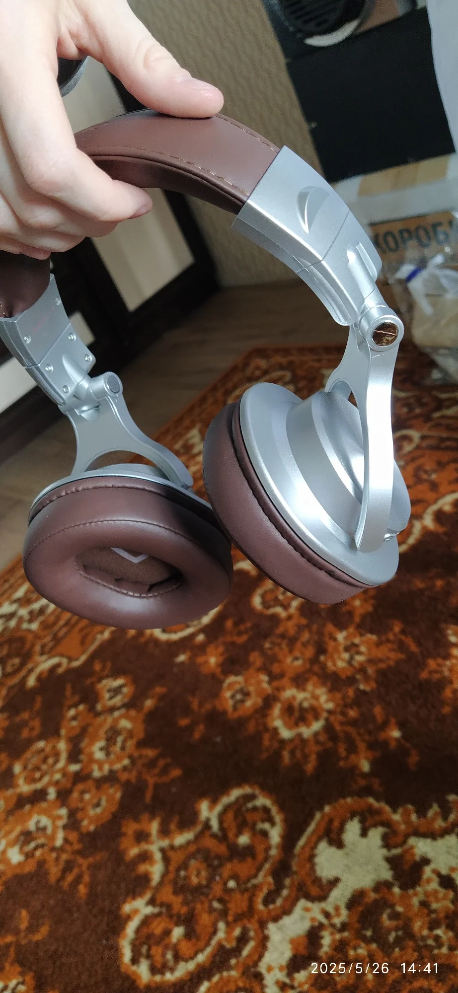 Офигенные наушники!Пришли за 40 дней,хорошо упакованные в воздушную упаковку,единственное, одна из них была порвана в месте распаковки,в остальном все отлично.Пришли в коробке и чёрном мешочке,качественно выполненным из искусственной кожи,со шнурком.В комплекте были провода 6.3 миниджек с 3.5 и 3.5 на 3.5мм.Наушники качественные,играют хорошо,особенно если скачать усилитель звука.Приехали заряженными на 100 процентов и играли 2 недели без зарядки,обе пары.Хорошо сидят на голове,регулируются.На звонки можно отвечать,нажав среднюю кнопку на правом наушнике. Индикатор будет моргать при включении,если наушники разряжены,он будет красный или красно синий,подавая изредка звуковой сигнал в наушники.Пользуемся уже 50 дней и все отлично,качество звука отличный,хорошие студийные и повседневные наушники за свои деньги.Можно слушать вдвоём,подключив любой из проводов в наборе к обоим наушникам и подключив одни из них к bluetooth.Спасибо за отличный товар!Leopold Fon G. 31 марта 2023
