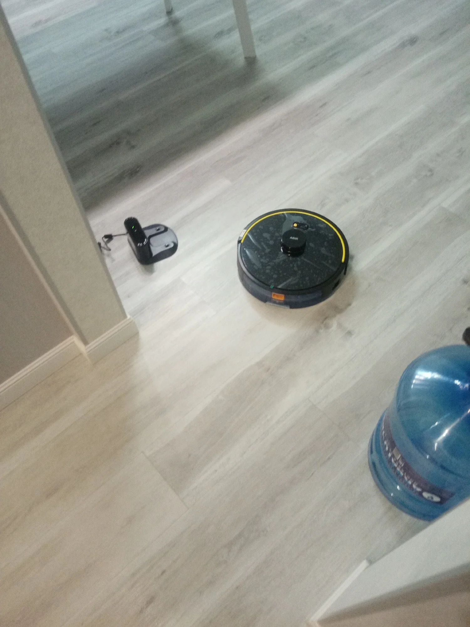 Принесли на дом. Пока непонятно как он работает я запустил его на кухне он какого то покатался чуток и поперся в коридор, если у него навигация лазерная почему он о плинтуса ударяется? царапает плинтуса корпусом ?? приложение не могу загрузить ссылка не открывается... кстате пришлось зарядить его прежде чем запустить... буду тестить дальше пока чето то убирает)))? крошек за ним не остается кот пока в шоке упирается в стенку и стоит на месте завис стоит на месте приехал на зарядку))) но не встает на нее .. так и не нашел зарядку это сырой глючный аппарат своих денег он не стоит!!!!!! Россия услыште этот отзыв. 4 тока за то что прислали рабочий))) дети и кот довольны но это не надолго