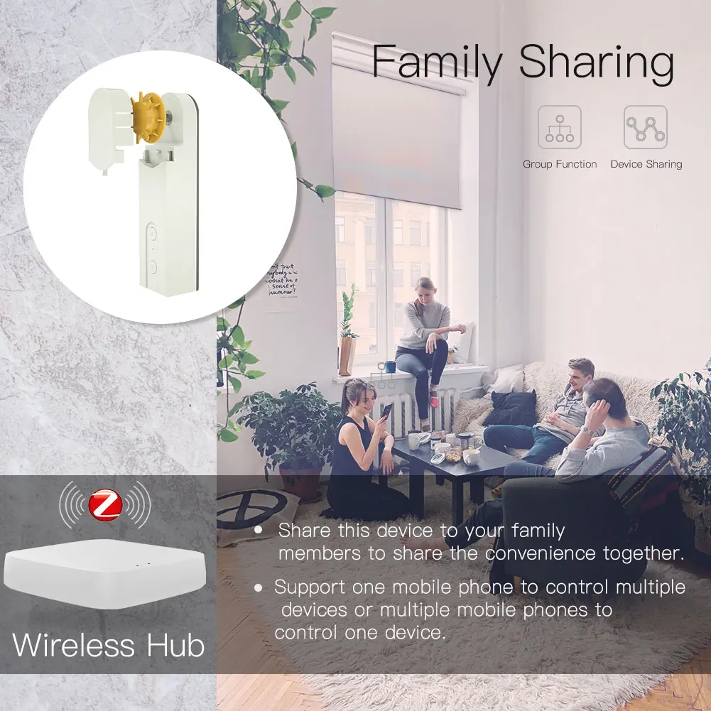 1. В: Могу ли я поделиться управлением с членами семьи, чтобы управлять жалюзи вместе?
