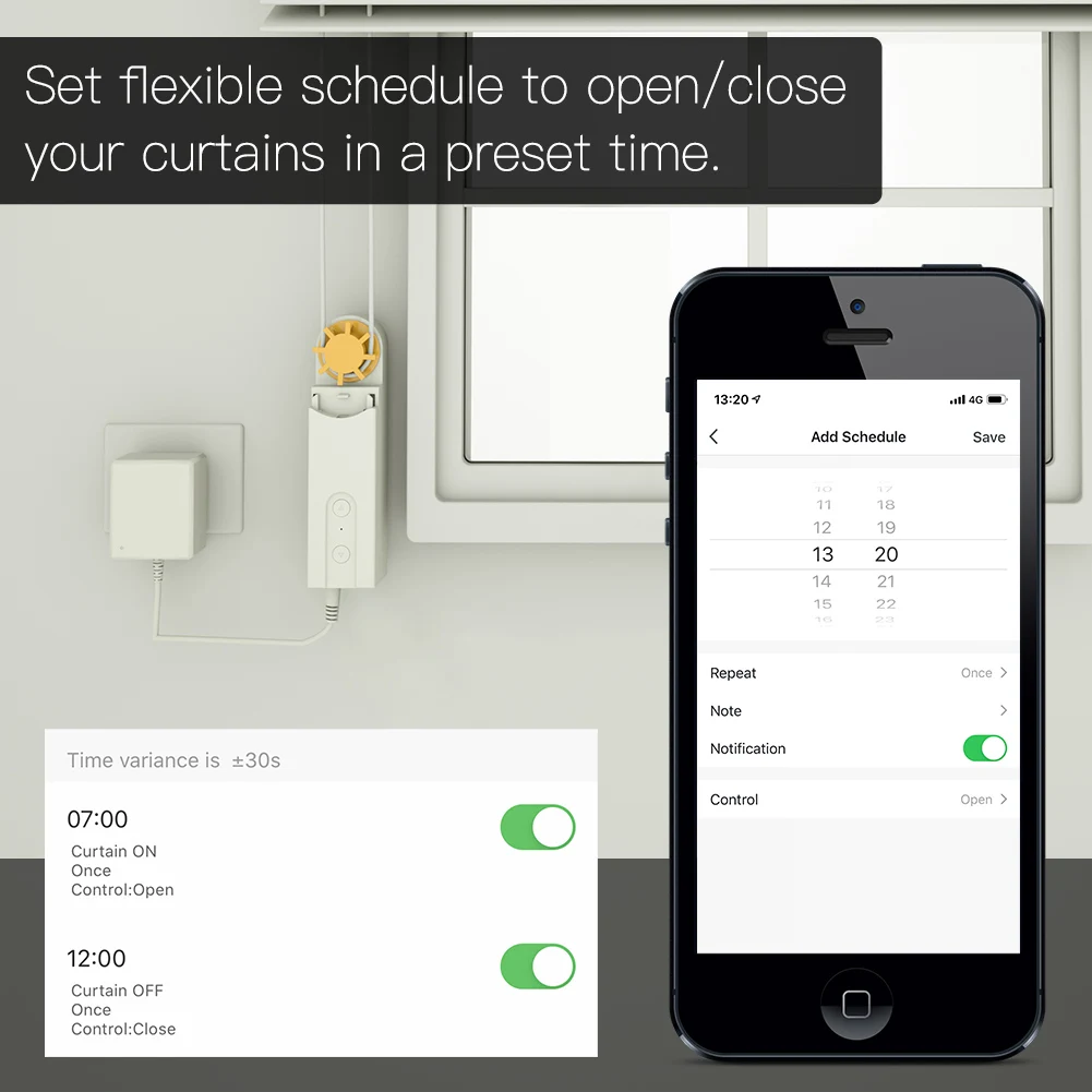 5. Установите расписание и таймер ваших жалюзи самостоятельно. Установите пользовательские расписания и точные таймеры в соответствии с вашими потребностями. Никаких установщиков или степени в области ракетостроения не требуется. Простая установка и настройка двигателя привода жалюзи за считанные минуты. Работает с любой пластиковой цепочкой из бисера или металлической цепочкой из бисера, которая Петельчатая.