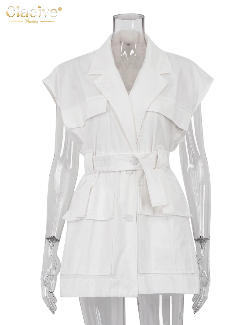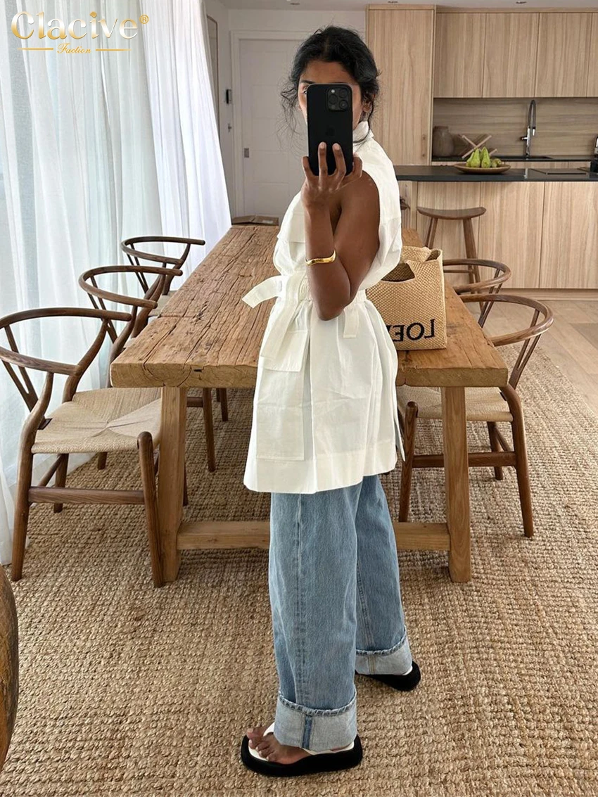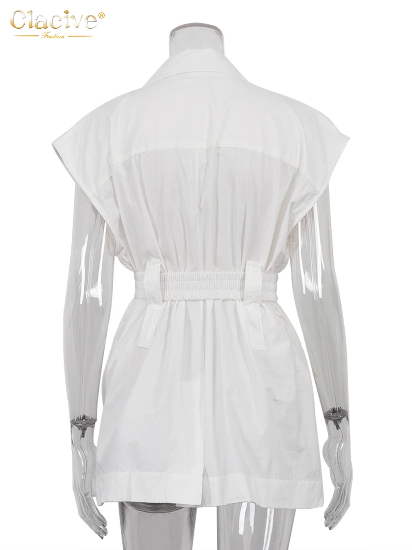 Clacive Fashion Loose White Cotton Women's Shirt 2024 Elegant Lapel Sleeveless...