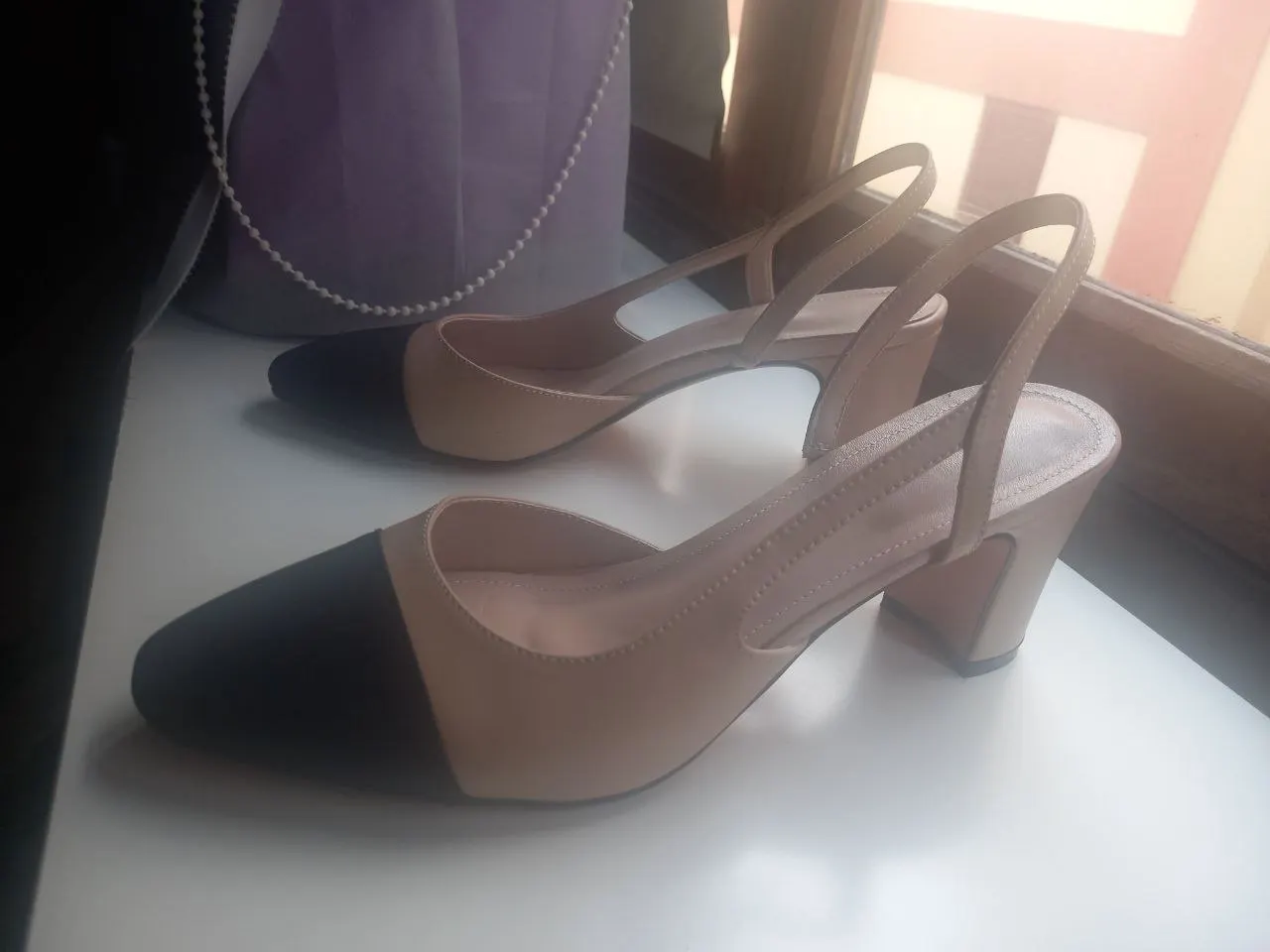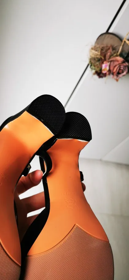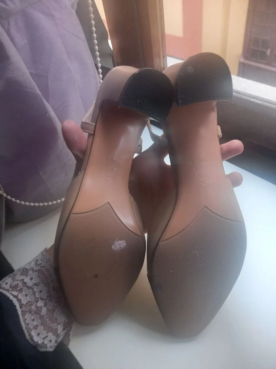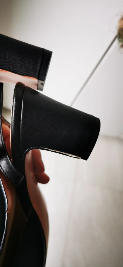 В принципе хорошие туфли, строчки ровные. Каблук выполнен не очень акуратно, видно белый клей, который я попытаюсь закрасить чёрной краской. Не уверена, что это натуральная кожа.