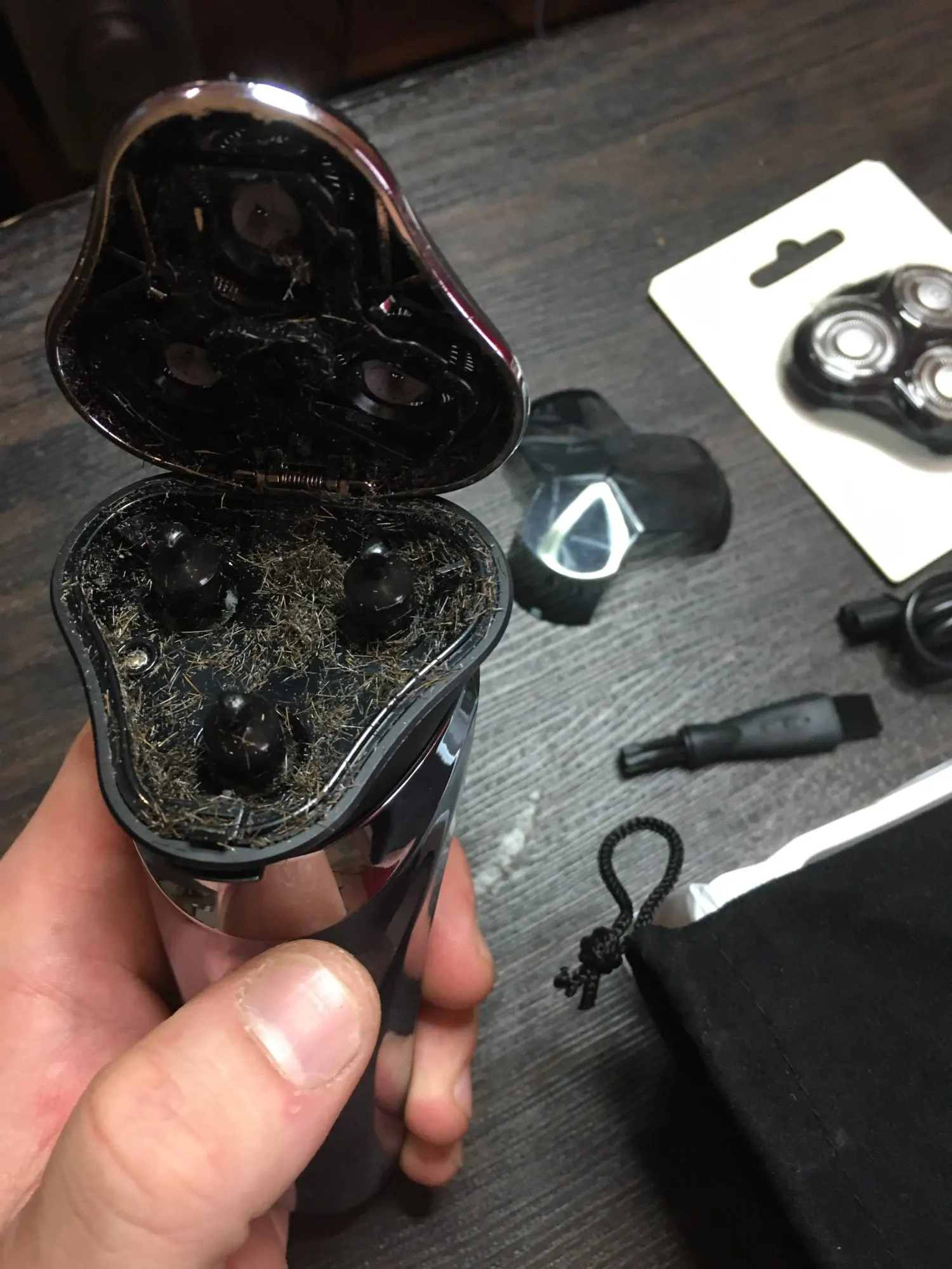 моя первая электробритва. очень доволен. за такую смешную цену (1800р) получил отличное устройство. в комплекте был мешок и две сменные головки + 1 стоит на бритве, так что хватить должно минимум на 3-4 года. общий стаж бритья около 20 лет со станками. щетина у меня редкая, но жёсткая. пробовал и одноразовые, и жилетовские кассеты, и классический станок - всё не то, долго, дорого, порезы, трудно брить подбородок. наконец решил купить эту бритву на пробу, благо цена по нынешним меркам никакая. бреюсь уже неделю, осваиваюсь. есть некоторые отличия в методах бритья, нужно экспериментировать индивидуально. конечно электробритва бреет не так гладко как лезвия, но это компенсируется простотой, скоростью и безболезненностью процесса. я бреюсь через день, на сухую. после бритья смазываю кожу лица кремом и мою головку бритвы водой. результат меня более чем устраивает, достаточно чисто и без раздражений. из минусов отметил бы нестандартный разъём для зарядки - поставить type-c ничего не стоило, но это придирки. бритва абсолютно не боится воды, заявлена возможность работы под водой. прекрасный вариант бритья как дома, так и в поездках. заряд держит хорошо, на каждое бритьё уходит около 3-5 минут и 8-10% заряда. кто сомневается, берите, пробуйте, не пожалеете, очень рекомендую 👍