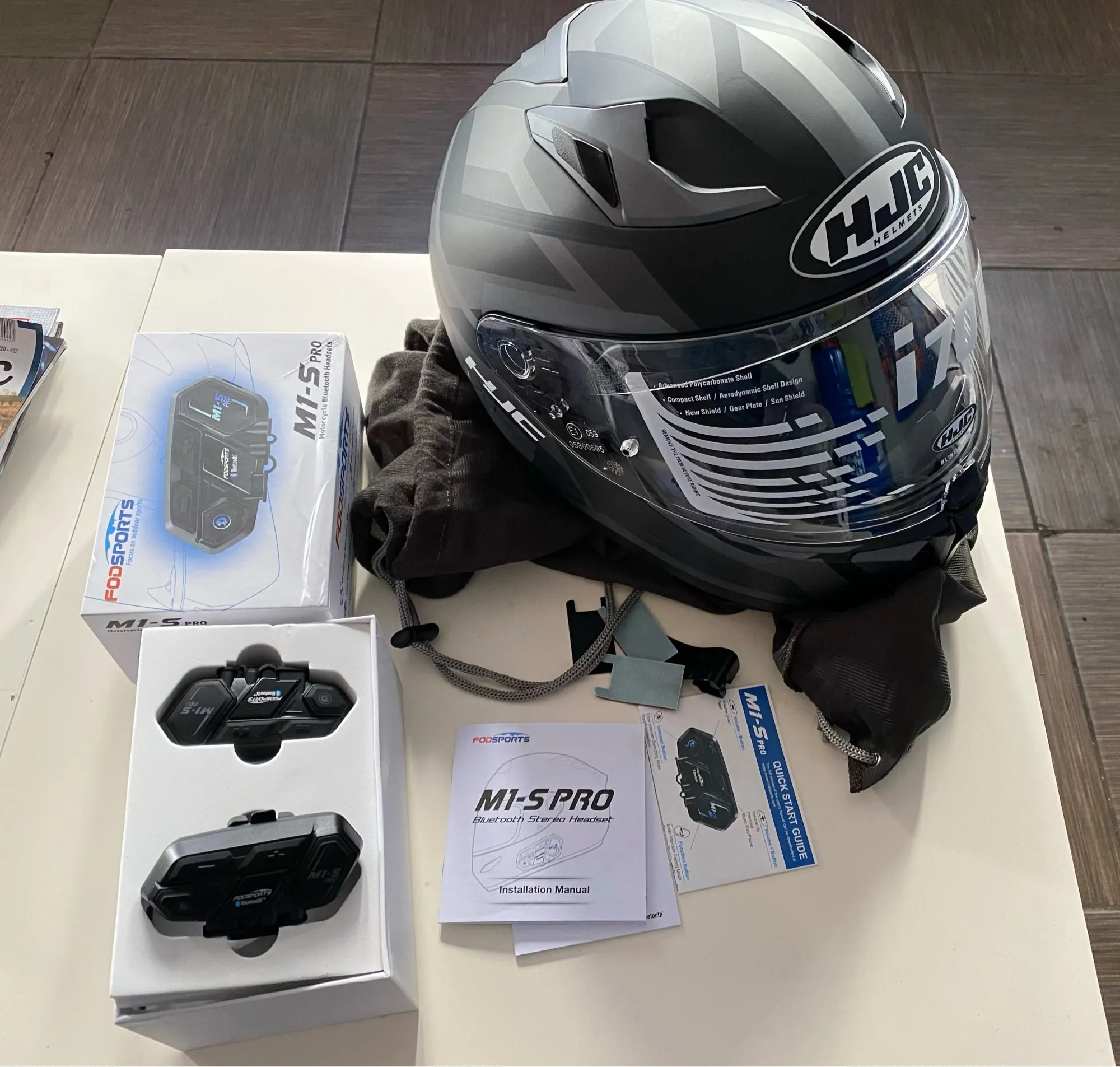 Хорошая система! В комплекте (помимо 2-х устройств) есть всё необходимое для установки абсолютно на любой шлем. И крепеж, и разные виды микрофонов, и двусторонний скотч, и липучки Управление понятное, легко склнектил 2 шлема, легко подключил смартфон. Музыка не прям супер, но норм, бас присутствует, но больше высоких частот. Доволен