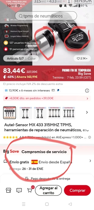 anuncia venta desde España, llega desde china. pedí 4 y lo envío en dos pedidos diferentes. solo me llegaron 2 y eran antiguos, no como los del anuncio. como explica algun comprador más, sin arandela protectora de llanta y un código de serie anterior. los otros dos jamás llegaron, al mes y algo me dijo que esperase ya que en china eran vacaciones, cómo que china si la venta es desde españa? . finalmente reclamar y reclamar y justificar a aliexpres que son dos envíos los que hace ya que el vendedor solo deja constancia de uno... no le compréis. os arrepentiréis.