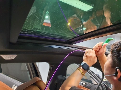 Доставка в Москву 10 дней. Работает отлично. Все цвета соответствуют штатным элементам подсветки (кроме белого, он почему-то розовый). Устанавливается аналогично видео в карточке товара, минут за 40-50. Единственная сложность - выровнять саму ленту в пазе, чтобы она не вываливалась и не проваливалась и при этом шла ровно. На это потратил больше всего времени. Как по мне, это лучше Sky Lounge. Я специально не заказывал ту опцию из-за того, что днем на стекле посторонние точки, а ночью чтобы была подсветка нужно шторку открывать. А эта лента работает с закрытой шторкой и стекло прозрачное. То что надо. Рекомендую!Andrey K. 22 мая 2023