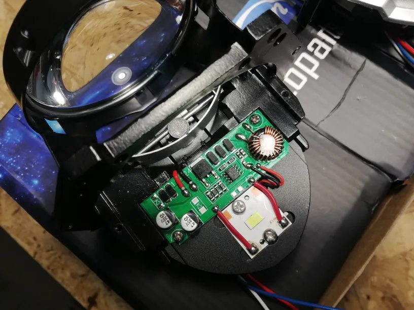 Так, линзы получил, упаковка была отличная, коробка целая, линзы тоже. По яркости на фото, линзы не ставил, прикинул на свет пары хелла 3р на ксеноне, одна билед линза пересвечивает их. По конструкции, радиатор может отделяться от линзы и шторки, что даёт возможность заменить светодиод в случае его помирания. Светодиод посажен через термопасту на радиатор прям по краске, снял краску, посадил на хорошую термопасту. Снял все размеры, в случае помирания - придумаю на место штатного радиатора радиатор побольше и с нормальным вентилятором на подшипниках, и может со светодиодом покруче. А пока так пойдет. Отражатель пластиковый, хз, посмотрим