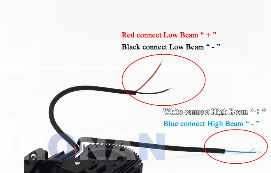 Красный и черный-управление ближним светом, подключение к линии питания