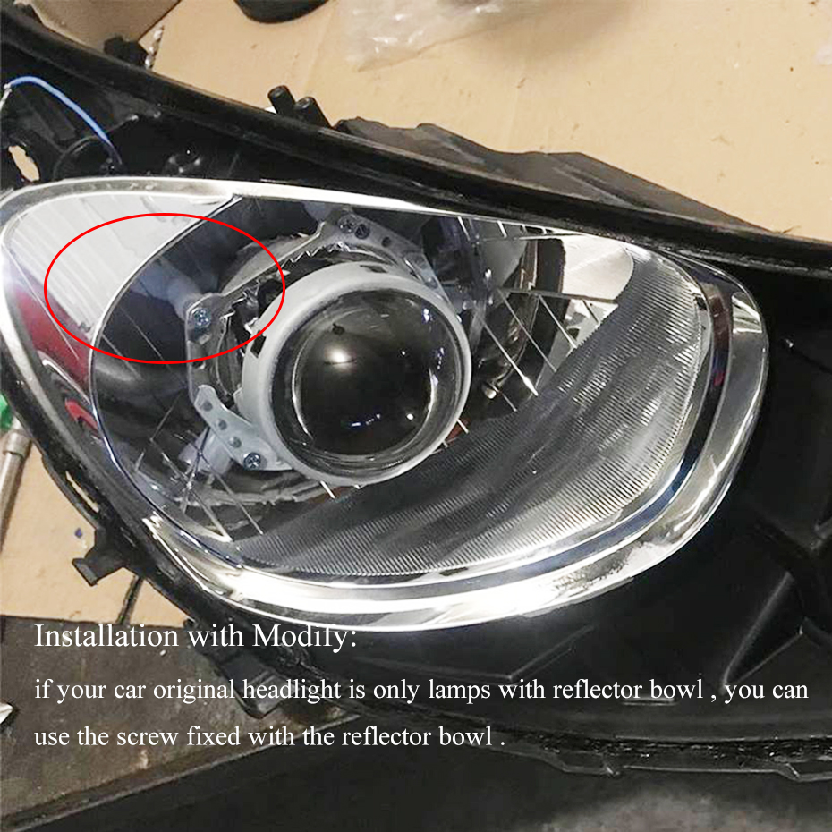 1. Установить с модификацией: если в корпусе фары вашего автомобиля есть только чаша отражателя, просто нужно достаточно места, используйте винт, закрепленный с чашей отражателя фары
