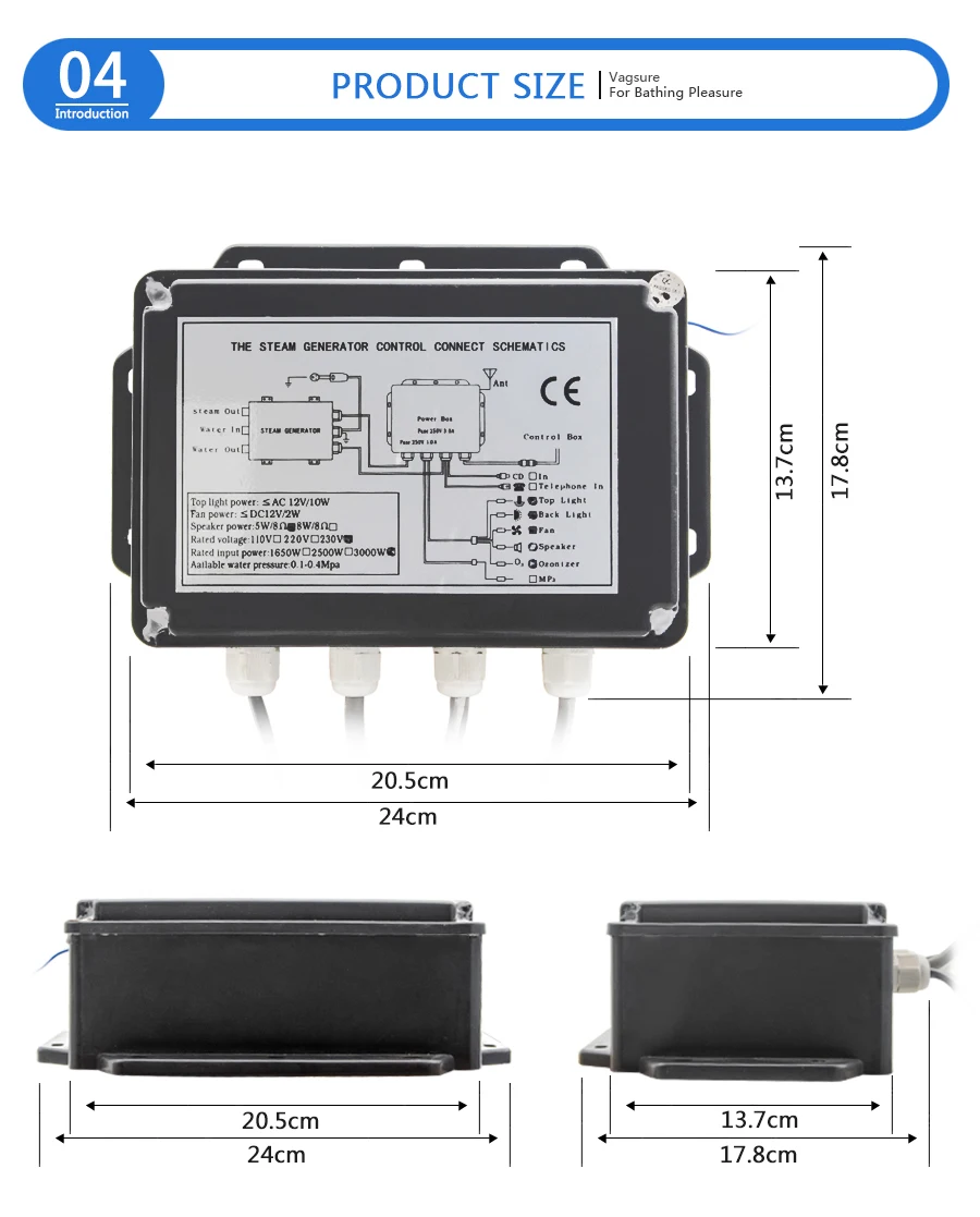 3KW AC 220V CE Certified Black Shower Steam Generator Wet Sauna Steam With Time...