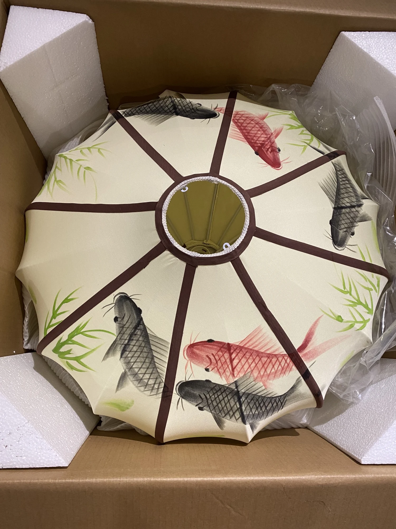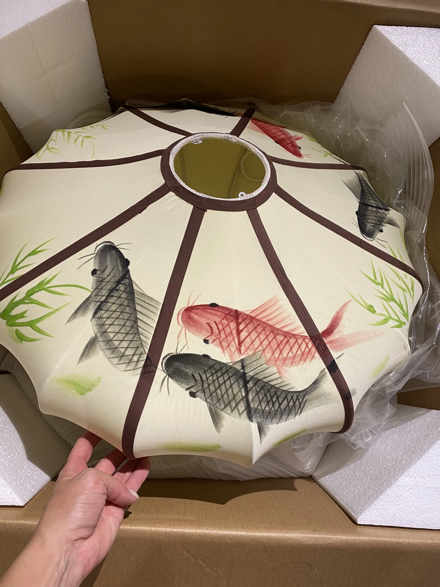 На самом деле они прислали мне не тот. Я заказал фонарь с красными рыбками. И хотя мне тоже нравятся лотосы, они не сочетаются с моей палеткой для комнаты, и мне придется их перепродать. Я бы не сказал, что качество хорошее. Это синтетическая ткань, видны швы и клей. Нет крепления, чтобы закрепить его на потолке, он в основном висит на проводе лампы. Никакой клеммной колодки, просто откройте провода. На кисточке есть загвоздки. Не то, что вы хотели бы за 568 юаней! Он выглядит довольно дешево, без включения света и с более близким внешним видом. Но при включенном свете выглядит очень красиво. Я бы порекомендовал его, но определенно по более низкой цене.