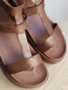 Сандалии-гладиаторы Beau Today с пряжками Обувь очень удобная! Очень легкая, мягкая кожа, не вызывает раздражения даже в жару. Подходит для средних или слегка широких стоп - ремешки регулируются, поэтому легко адаптировать к ноге. Размер идеален, сидит как влитая. Цвет — красивый карамельный, сочетается со всем. Пряжки аккуратные и добавляют стиля. Идеальный вариант на каждый день – как для города, так и для отпуска. Я рекомендую это! Размер 7.5 подходит для стопы длиной 24.5 см.