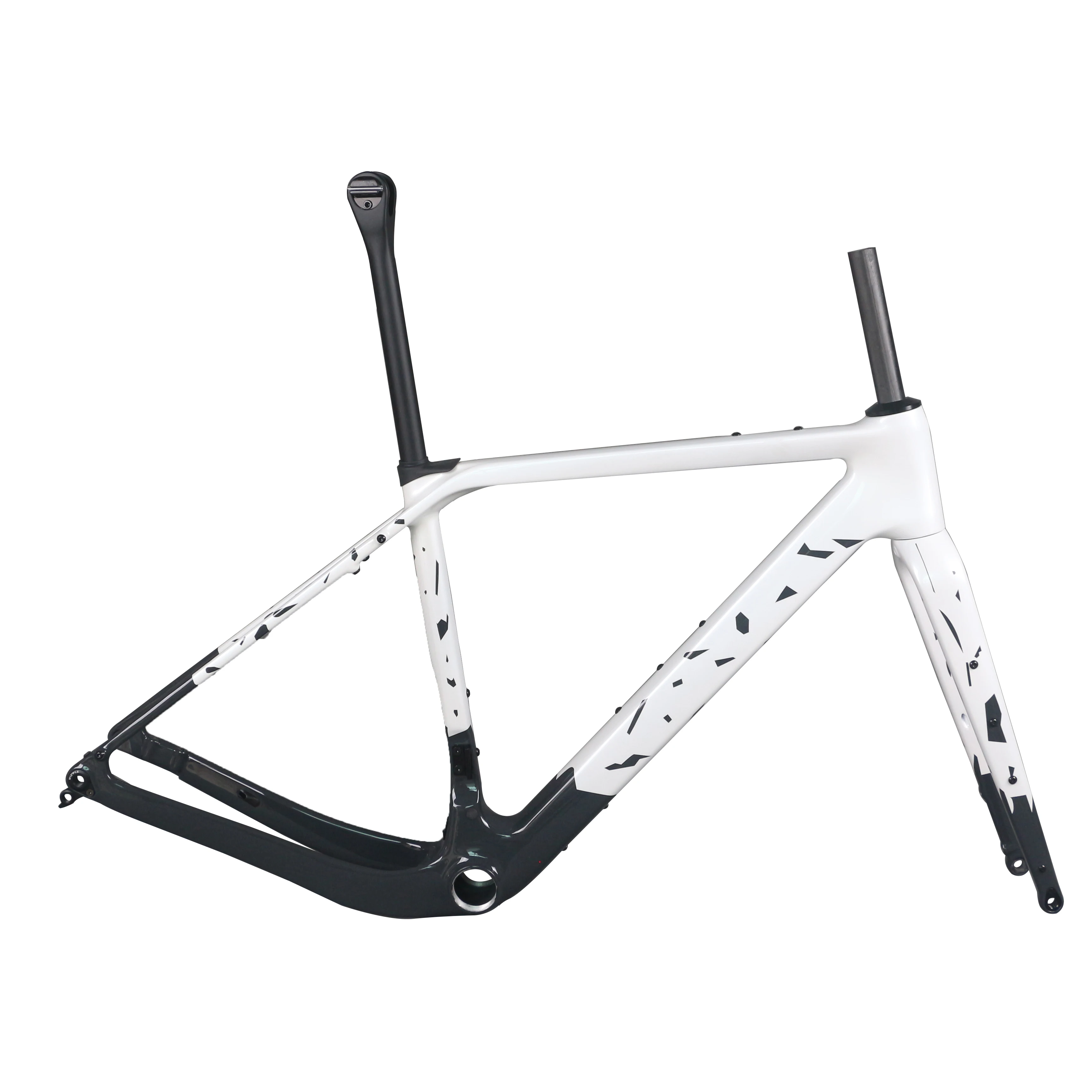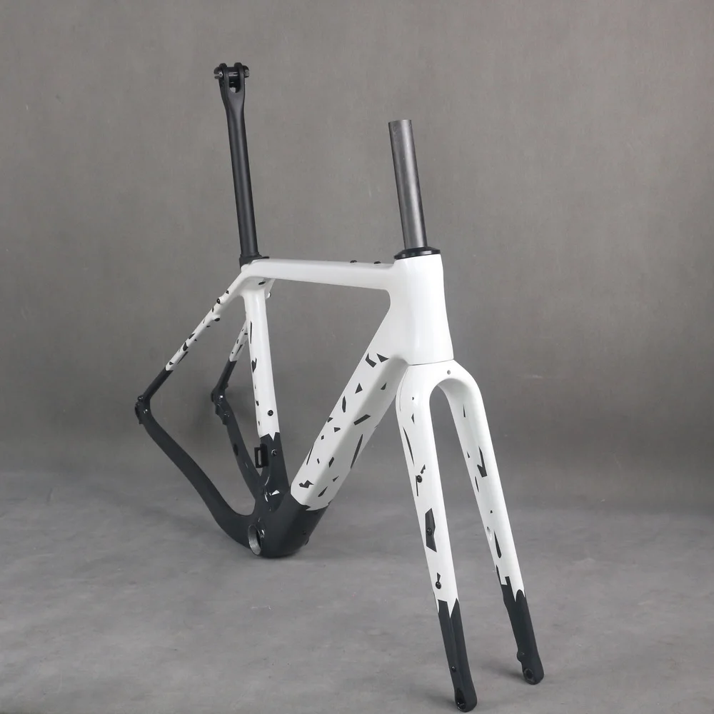 Carbon Fiber Gravel Bike Frame GR048 Gray White Speckled Design T47 Bottom...