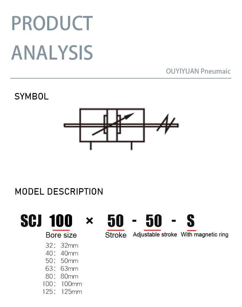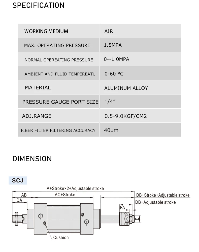 SCJ Adjustable Standard Cylinder SC32/-50/63/80mm Bore Air Pneumatic Cylinder...