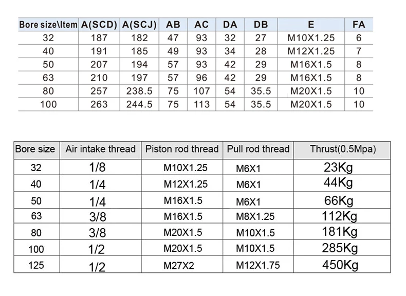 Пневматический цилиндр SCJ серии SC32/-50/63/80 мм