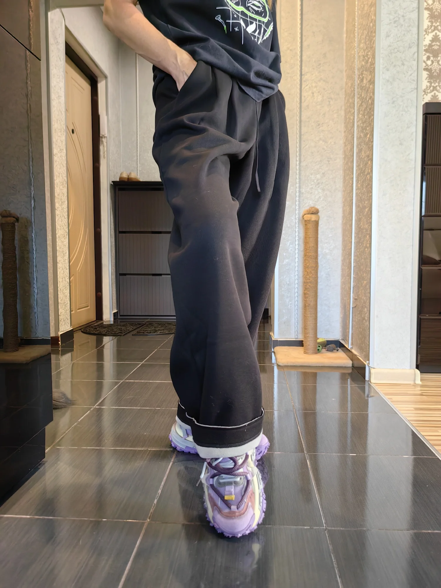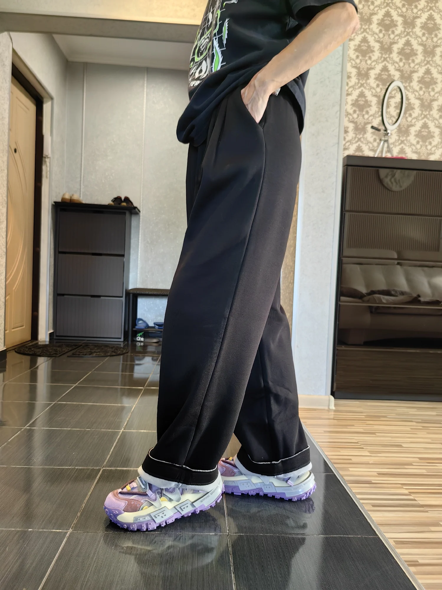 - Стиль брюк:Широкие брюки