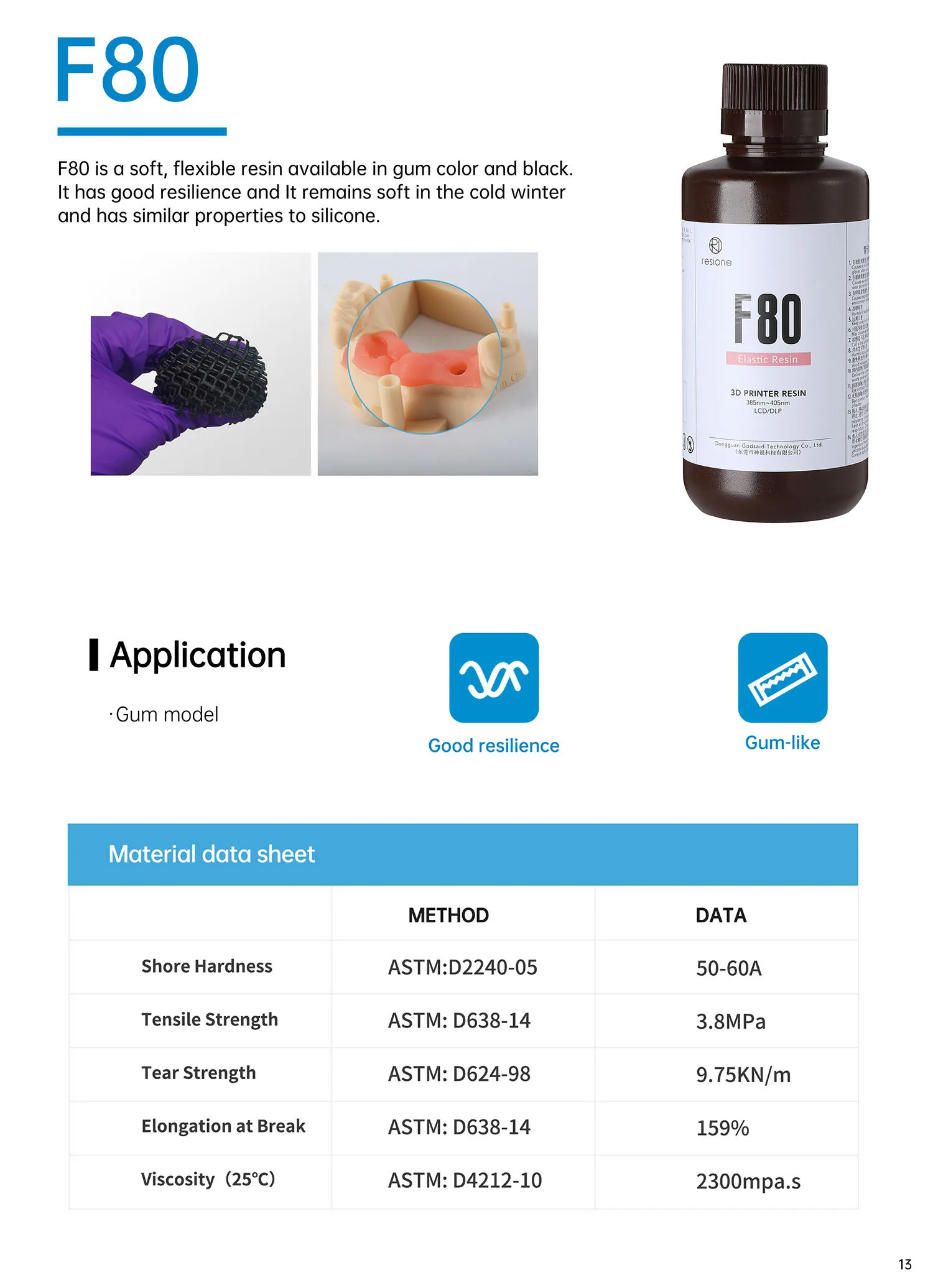 F80 это мягкая, гибкая смола, доступная в цвете резинки и черном цвете.